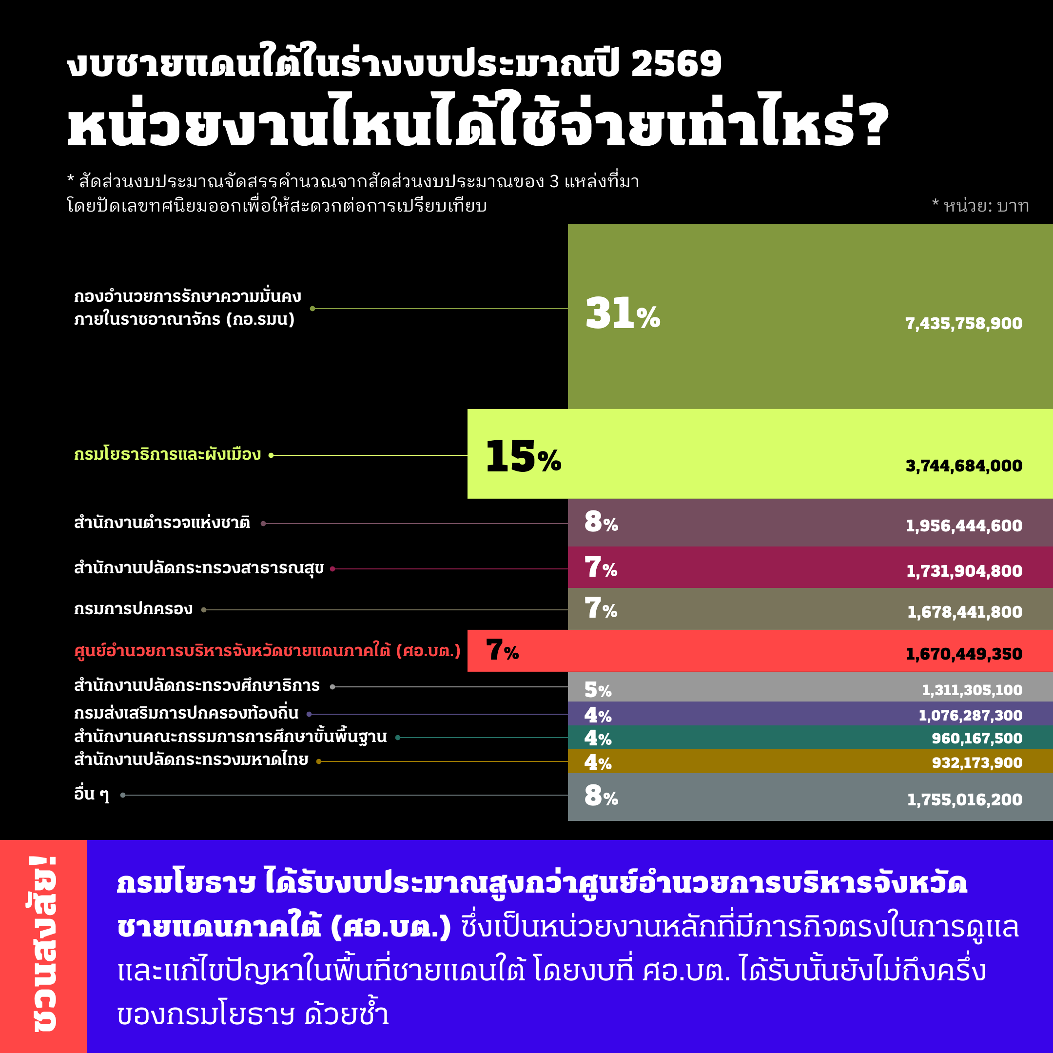 งบชายแดนใต้ในร่างงบประมาณปี 2569 หน่วยงานไหนได้ใช้จ่ายเท่าไหร่?