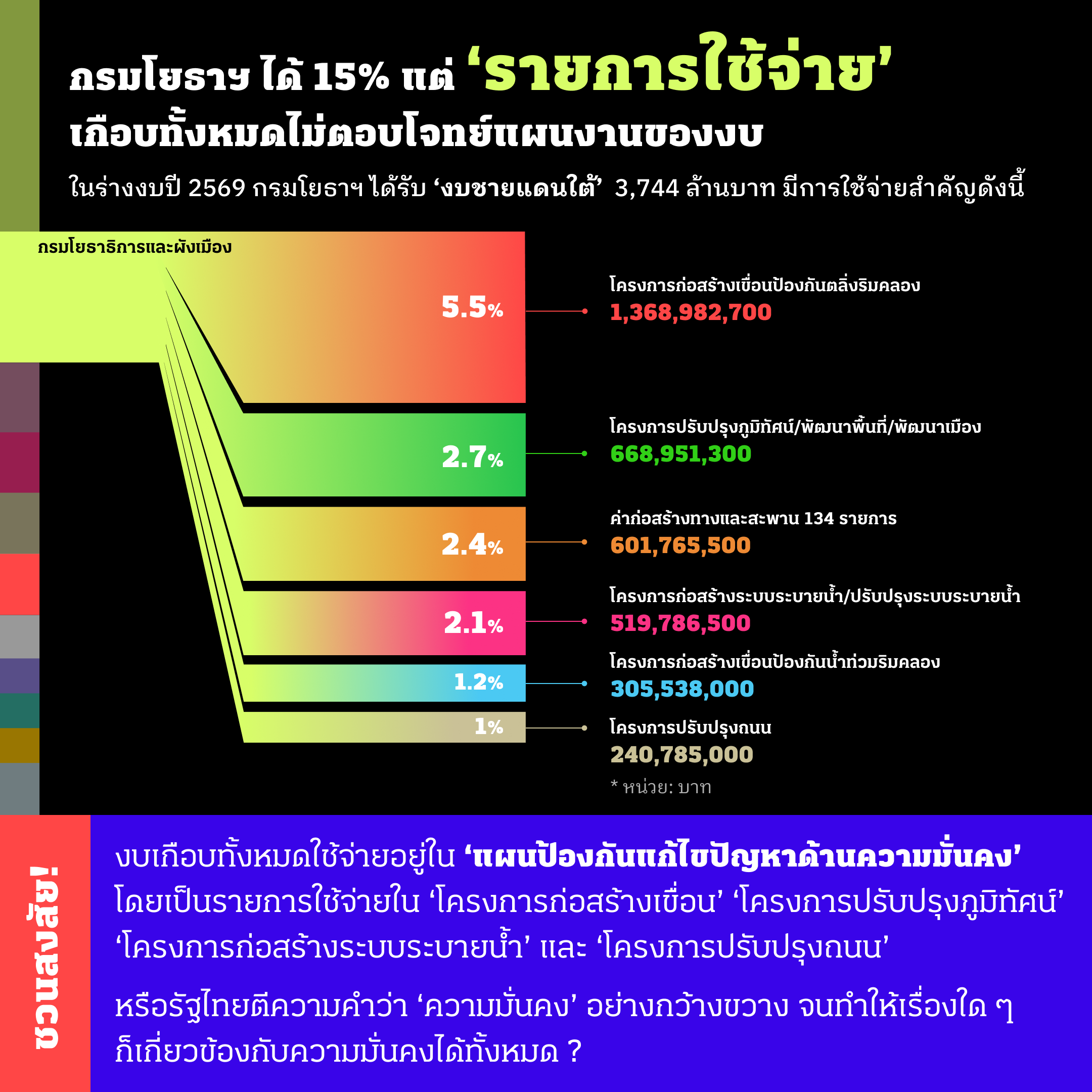 ในร่างงบประมาณปี 2569 กรมโยธาฯ ได้รับ ‘งบชายแดนใต้’ เป็นจำนวนเงินกว่า 3,744 ล้านบาท หรือเทียบเป็น 15% ของงบชายแดนใต้