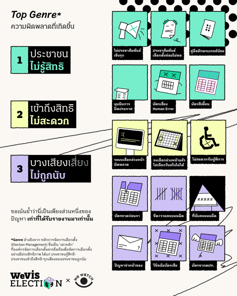 WeVis ร่วมกับ We Watch ขอชวนคุณท่องไปใน “Election Wrapped” เพื่อระลึกความหลังว่าการเลือกตั้งทั่วไปครั้งล่าสุดในปี 2566 เกิด ความผิดพลาด อะไรบ้าง และมารอพิสูจน์กันว่าราว 3 ปีผ่านไป กกต. จะสามารถแก้ไขความผิดพลาดได้อย่างเป็นรูปธรรม หรือจะปล่อยให้ประวัติศาสตร์ต้องซ้ำรอย ?