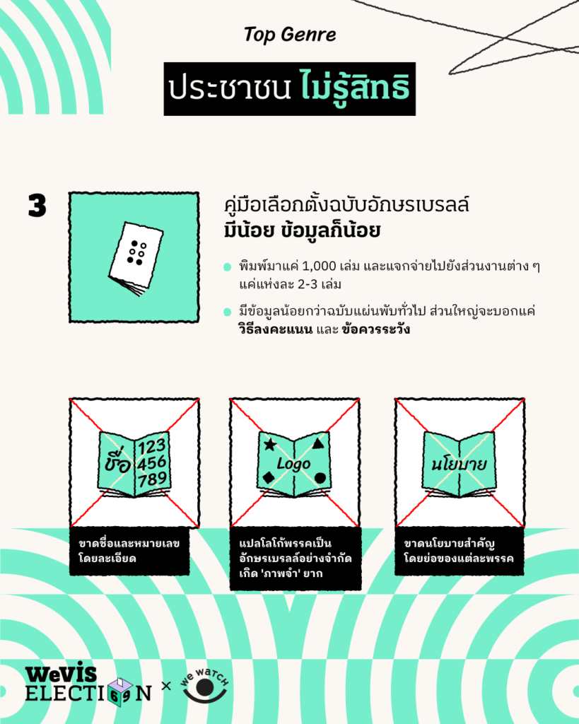 3. คู่มือเลือกตั้งฉบับอักษรเบรลล์มีจำนวนน้อย ข้อมูลก็น้อย