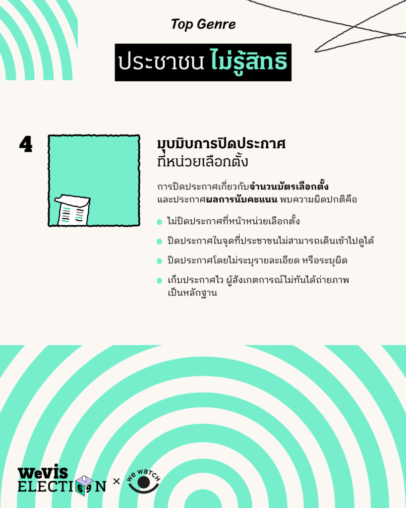 4. ประกาศหน้าหน่วยเลือกตั้ง ไม่ติดบ้าง รีบเก็บบ้าง ข้อมูลก็หายบ้างผิดบ้าง
