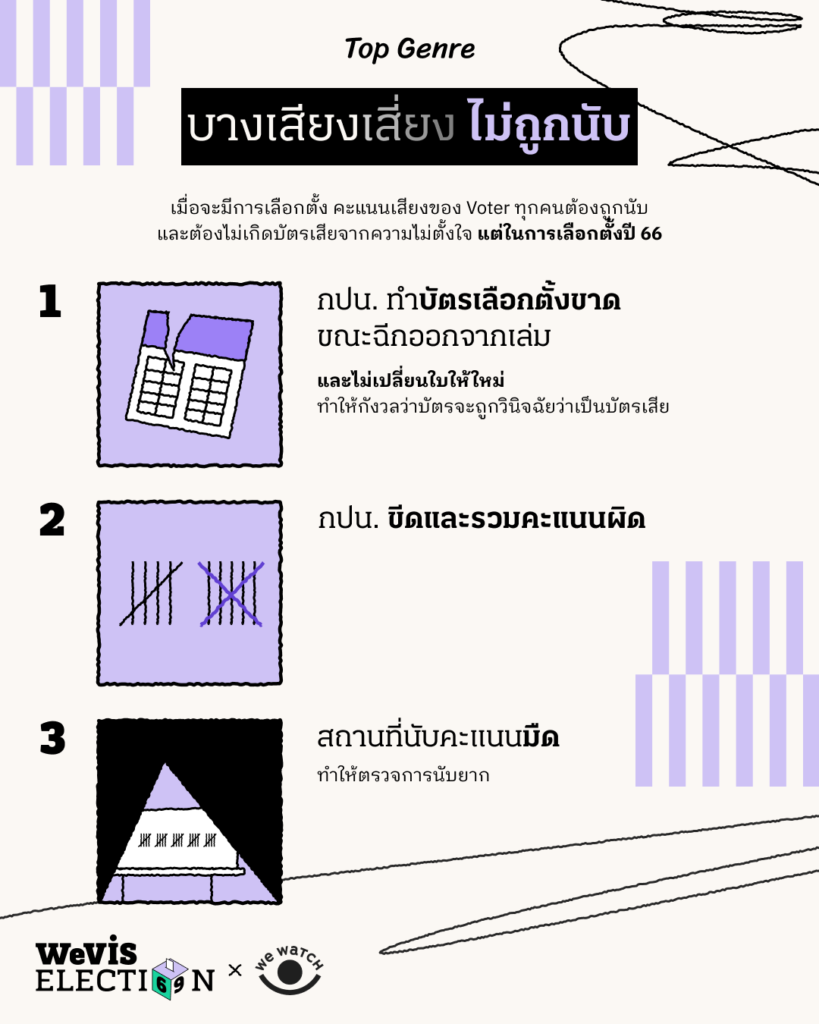 แต่ทว่า การเลือกตั้งปี 2566 ที่ผ่านมา กลับมีหลายกรณีที่ Voter ถูกทำให้ ไม่รู้สิทธิ เข้าไม่ถึงสิทธิ หรือแม้แต่ (เสี่ยง)ไม่ถูกนับคะแนนเสียง ไปเสียอย่างนั้น