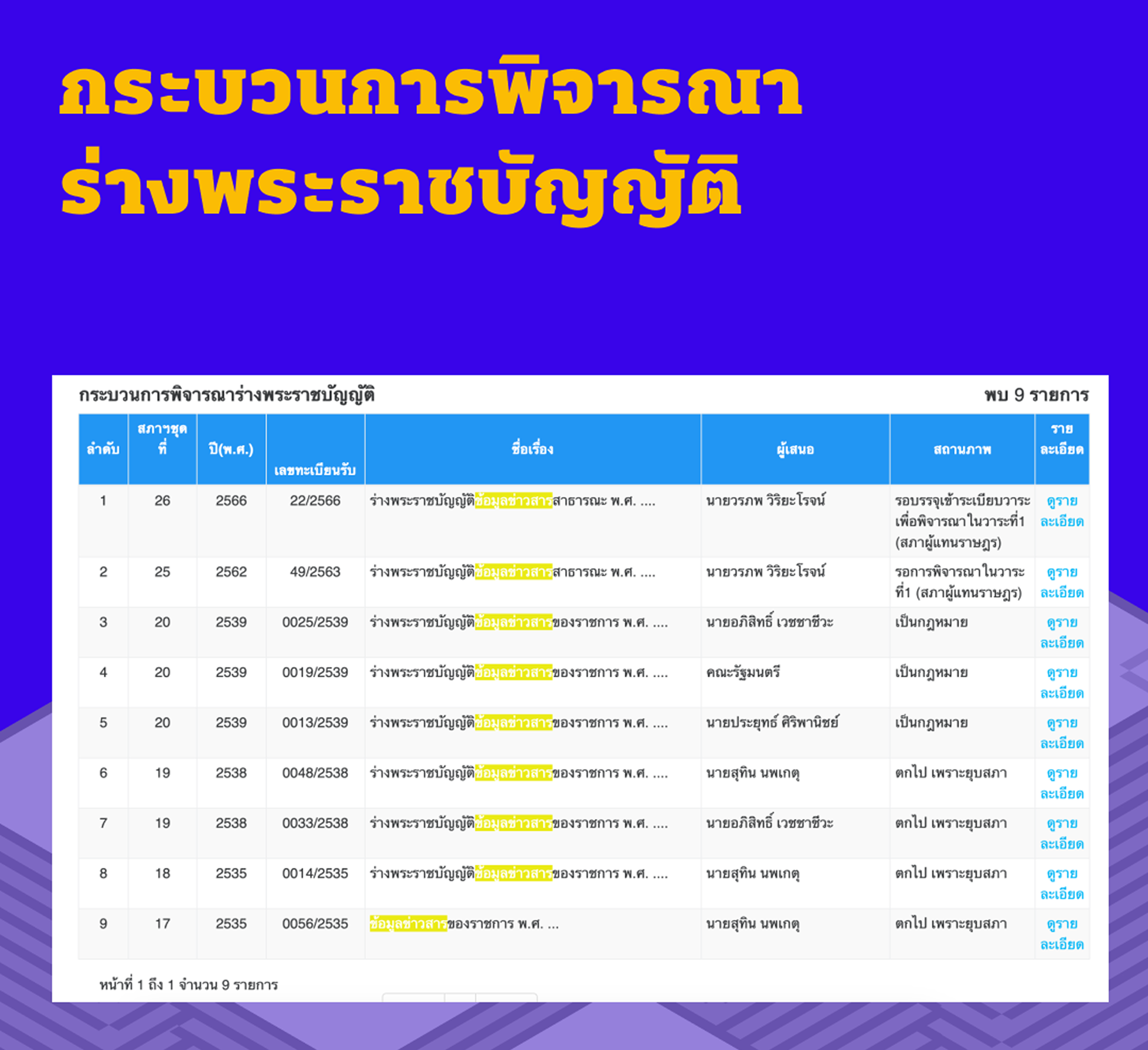 และที่น่าประหลาดใจไปมากกว่านั้น ตลอดระยะเวลาที่ผ่านมา แทบไม่เคยมีสมาชิกสภาผู้แทนราษฎรคนไหนริเริ่มเสนอแก้ไขกฎหมายฉบับนี้อย่างจริงจังเพื่อให้สิทธิในการเข้าถึงข้อมูลของประชาชน รวมถึงสร้างความโปร่งใสและความรับผิดชอบต่อสังคม