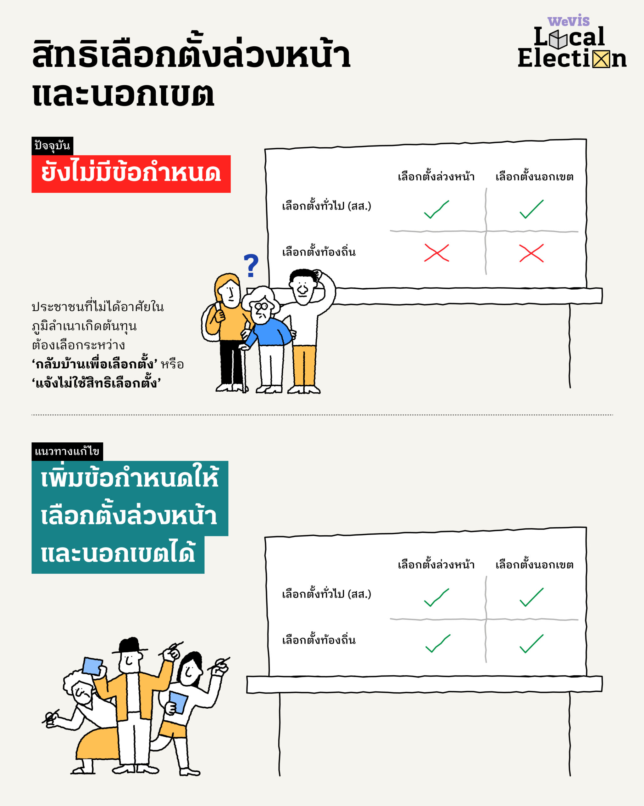 🔑 สิทธิเลือกตั้งล่วงหน้าและนอกเขต ควรมีอยู่ในการเลือกตั้งทุกระดับ