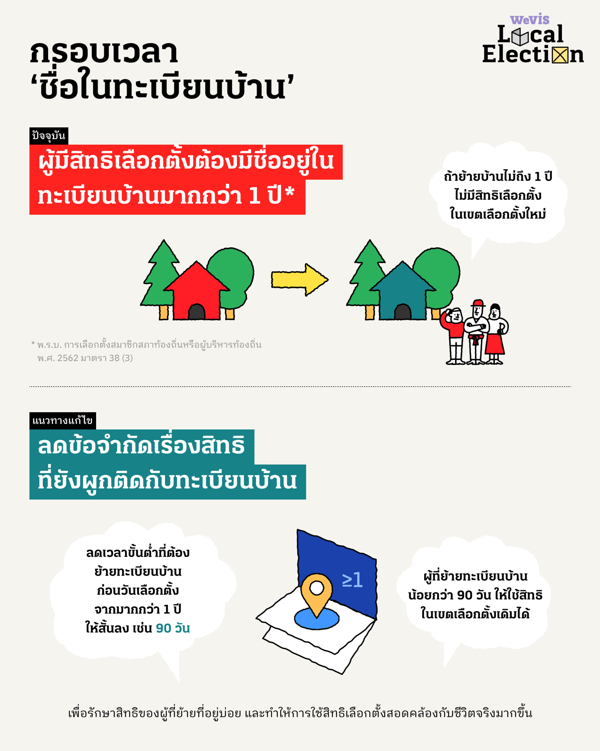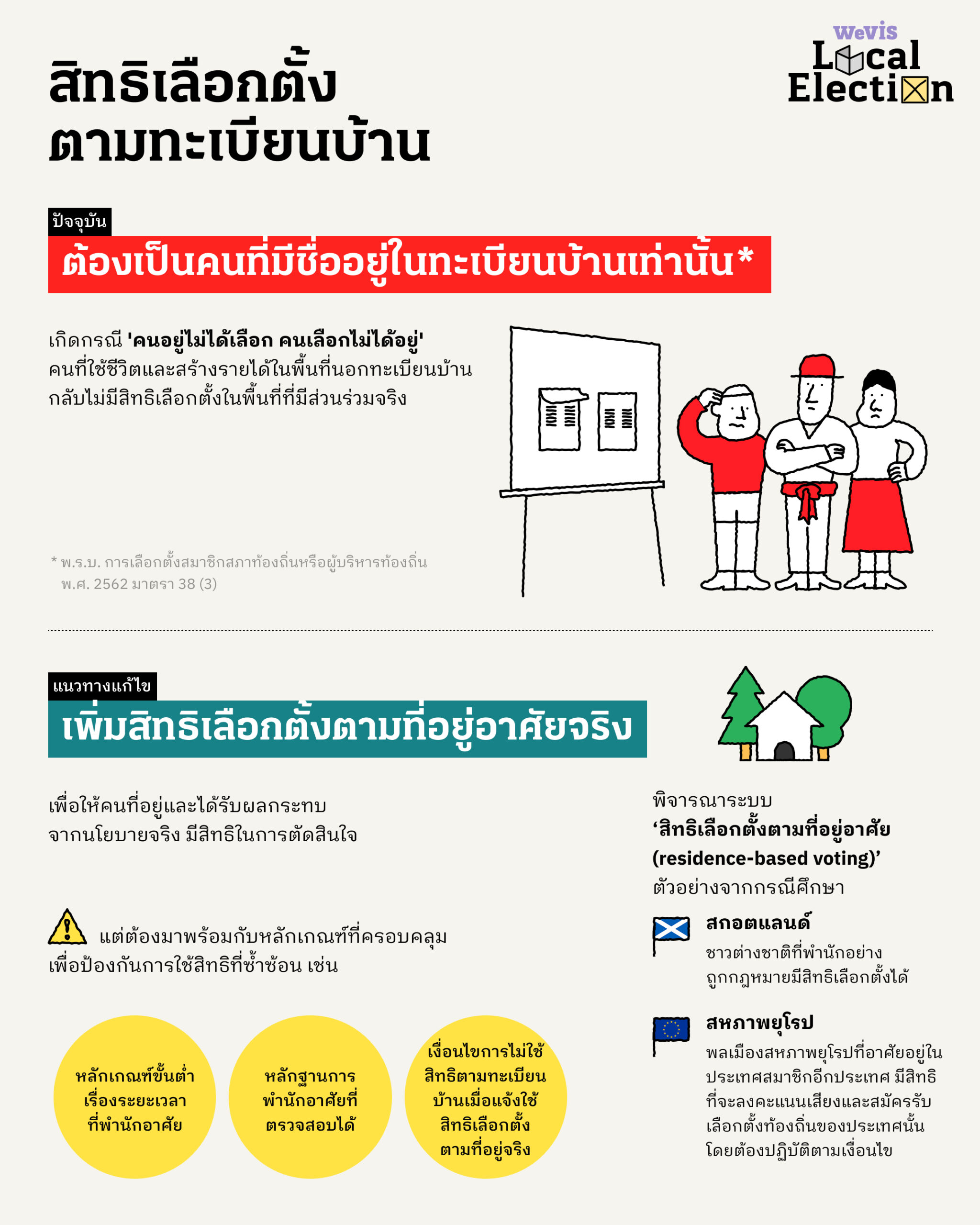 🔑 เพิ่มสิทธิให้ประชาชนเลือกตั้งตามที่อยู่อาศัยจริง เพราะจ่ายภาษีท้องที่เช่นเดียวกับผู้ที่มีทะเบียนบ้าน